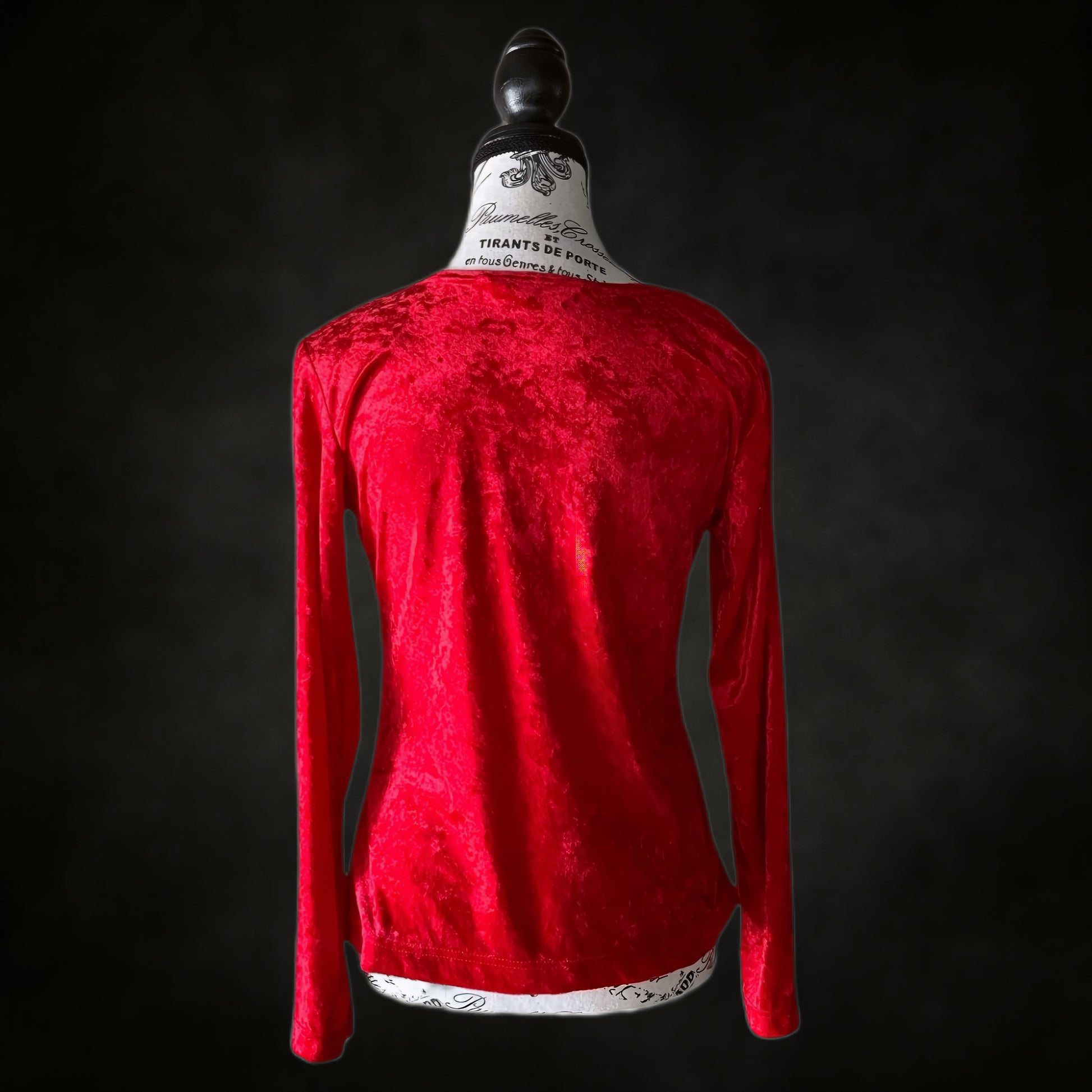 Vintage Red Crushed Velvet Top — 1990s Goth/Grunge, S-M-L